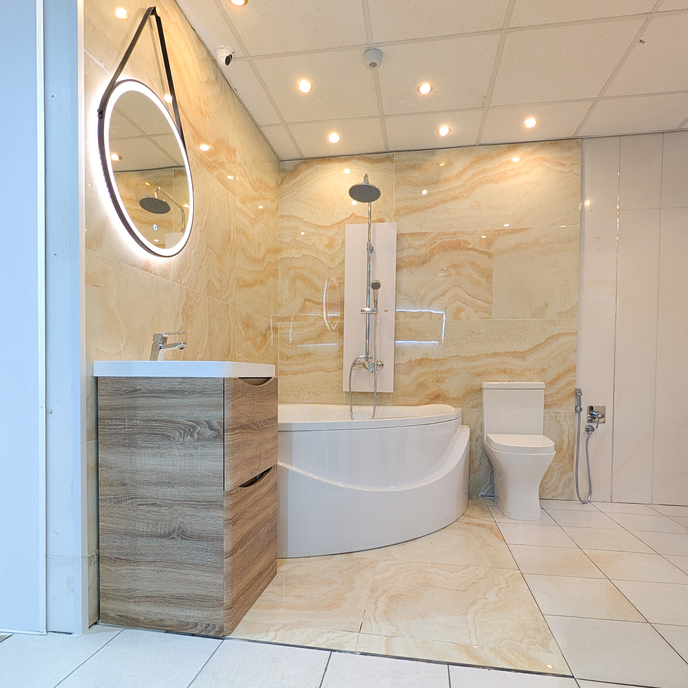 Browse a vast range of bathroom essentials and tiles, always in stock and ready for purchase.