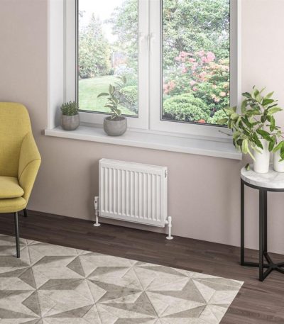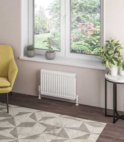 Type 11 Compact Panel Radiator is a high-quality, compact heating solution for your bathroom. Measuring 400 x 500mm and finished in gloss white, this radiator is designed for hot water central heating systems and has a maximum operating pressure of 4 bars. Tested to BS EN 442 standards, it comes complete with a fitted top grill, side panels, and installation kit, including air vent and blanking plug. With a 10 Year Manufacturer’s Warranty, this radiator offers reliable performance and is manufactured under ISO 9001:2015, complying with UKCA and CE standards, ensuring a durable and efficient heating solution for your bathroom.