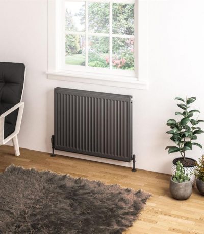 Type 22 Compact Panel Radiator is a high-quality, compact heating solution designed for hot water central heating systems. With double panels and double convectors, this radiator provides efficient heat output and is tested to BS EN 442 standards. The matt anthracite finish is achieved through a durable epoxy polyester electrostatic powder coating process. Each radiator comes complete with a fitted top grill, side panels, and installation kit, including concealed wall brackets and air vent. Backed by a 10 Year Manufacturer’s Warranty, this radiator is built to last and is suitable for two-pipe installations with a maximum operating pressure of 4 bars.