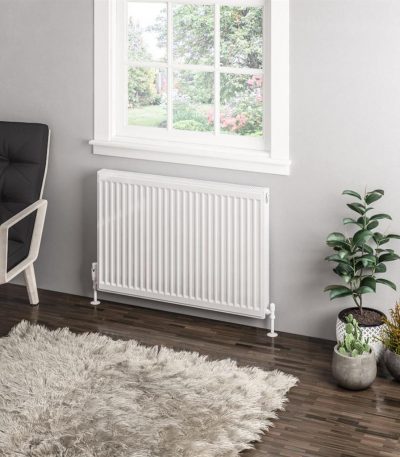 Type 11 Compact Panel Radiator is a high-quality, compact heating solution designed for hot water central heating systems. Manufactured in state-of-the-art production lines, this radiator features a single panel and single convector, and is tested to BS EN 442 standards. With a maximum operating pressure of 4 bars and a 10 Year Manufacturer’s Warranty, this radiator offers reliable and efficient heating. The radiator is powder coated in RAL 9016 Gloss White and comes complete with a fitted top grill, side panels, and an installation kit. Made from high-quality mild steel, this radiator is suitable for two-pipe installations and is backed by a 10 Year Warranty against manufacturing or material faults.