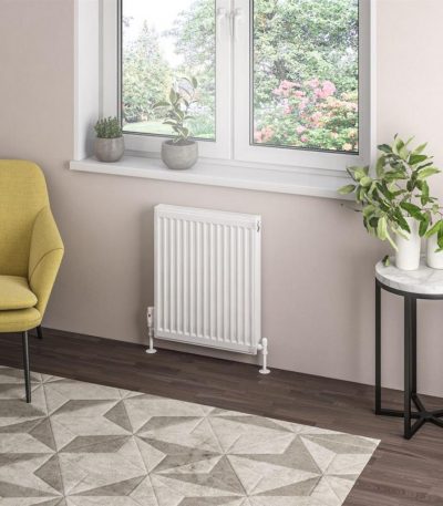 Type 22 Compact Panel Radiator is a high-quality, compact heating solution designed for direct hot water central heating systems. With a durable gloss white epoxy polyester powder coating, this radiator features double panels and double convectors for efficient heat output. Tested to BS EN 442 standards and manufactured in state-of-the-art production lines, it comes complete with a fitted top grill, side panels, and installation kit. The radiator has a maximum operating pressure of 4 bars and is backed by a 10-year manufacturer’s warranty, ensuring reliability and performance. Its compact design and sleek finish make it an ideal choice for modern bathrooms.