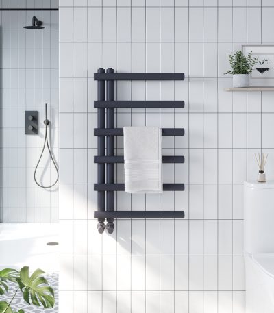 The Penrith wall-mounted heated towel rail is a stylish and functional addition to any bathroom. Its sleek design and textured finish make it a perfect fit for modern bathrooms, providing a luxurious and warm towel-drying experience.