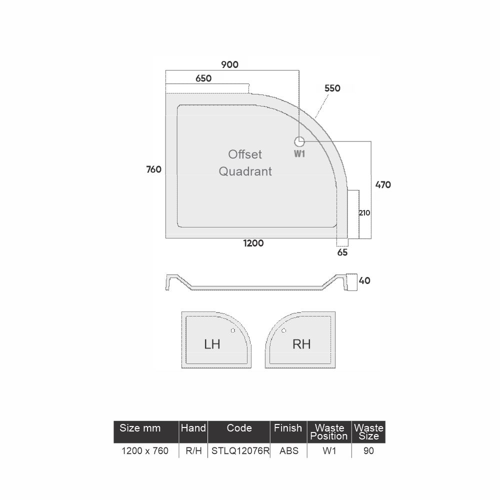 Be the first to review “1200 x 760 ABS Low Profile 550 Radius Right Hand Shower Tray”