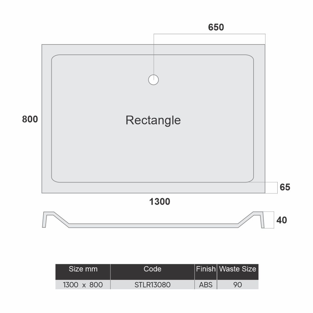 The MX Elements 1300 × 800 mm tray features a modern, slimline 40 mm profile, combining a stone-resin core with a glossy ABS acrylic cap. It typically weighs around 32–35 kg, about 40% lighter than traditional high-wall stone trays, making handling and installation significantly easier.