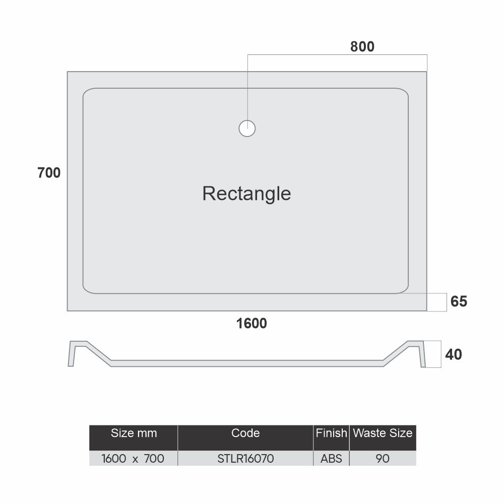 A generous 1600 × 700 mm rectangular tray from the MX Elements range featuring a low 40 mm profile, combining a stone-resin core with glossy ABS acrylic. This tray replicates the aesthetic of cast stone yet remains approximately 40% lighter for easier installation.