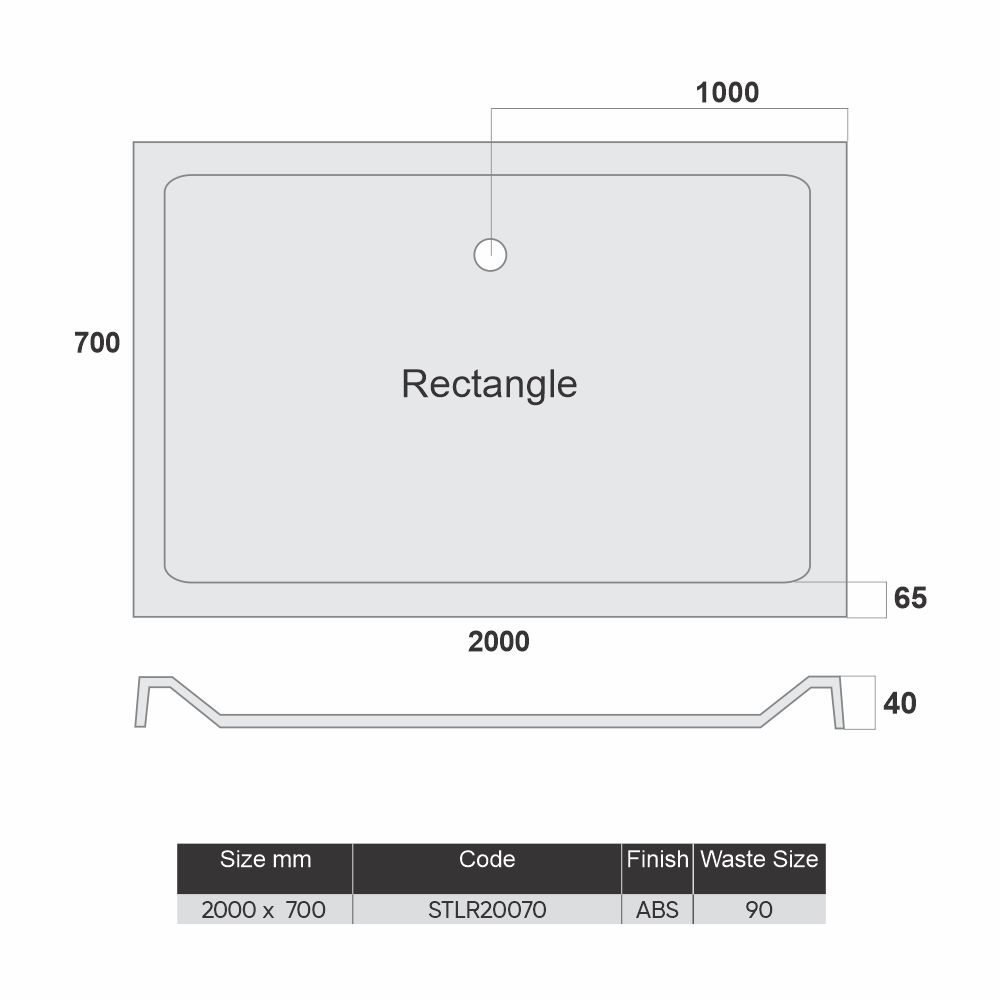 2000 x 700 ABS Stone Low Profile Shower Tray