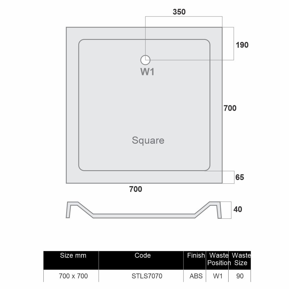 A sleek 700 × 700 mm square shower tray from MX Trays’ Elements range. Featuring a slim 40 mm profile, it has a glossy ABS acrylic cap over a stone-resin core. This tray offers a luxurious stone-like feel while being about 40% lighter, enhancing ease of handling and installation.