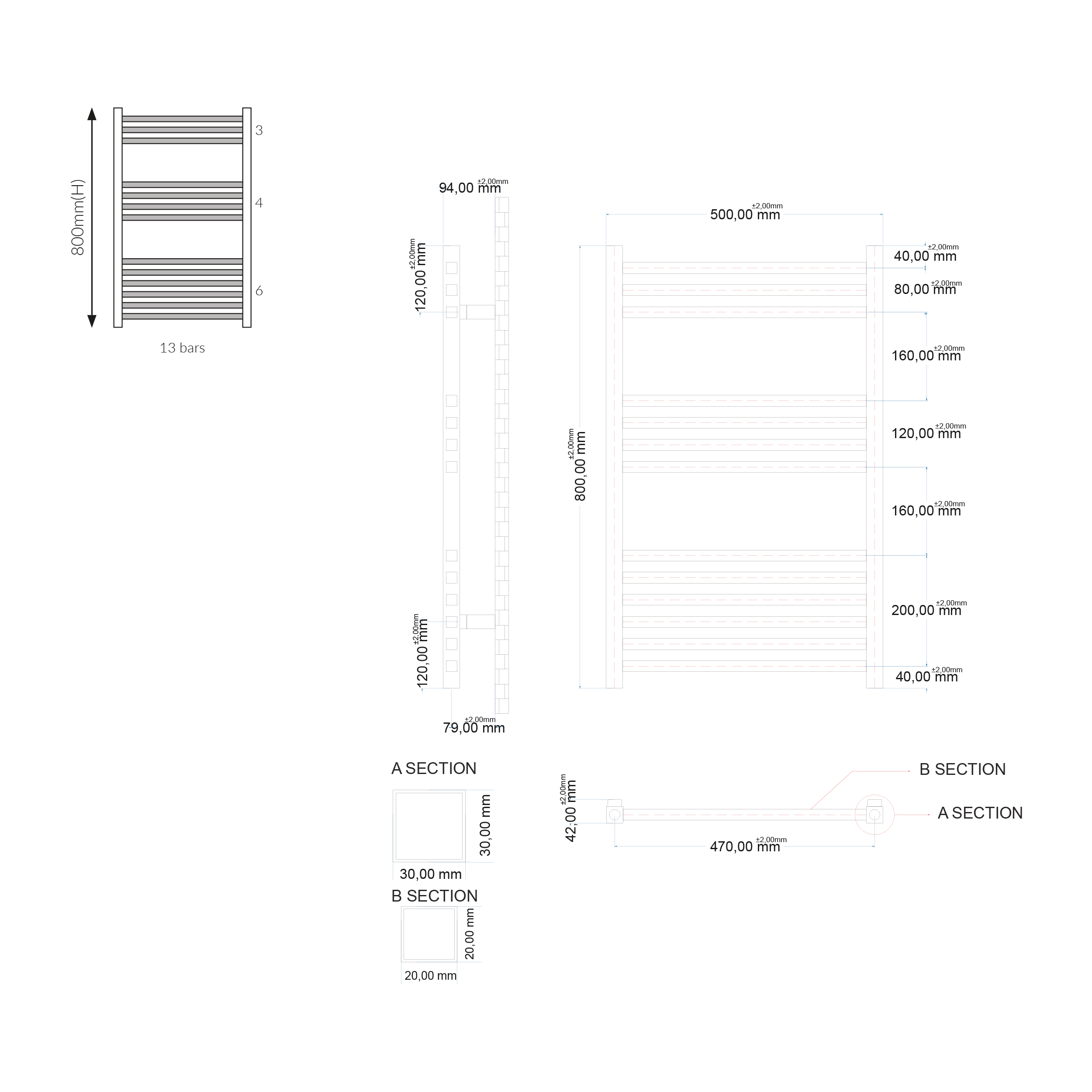 Belfast Towel Radiators Towel Rail 850h x 500w x 30d mm