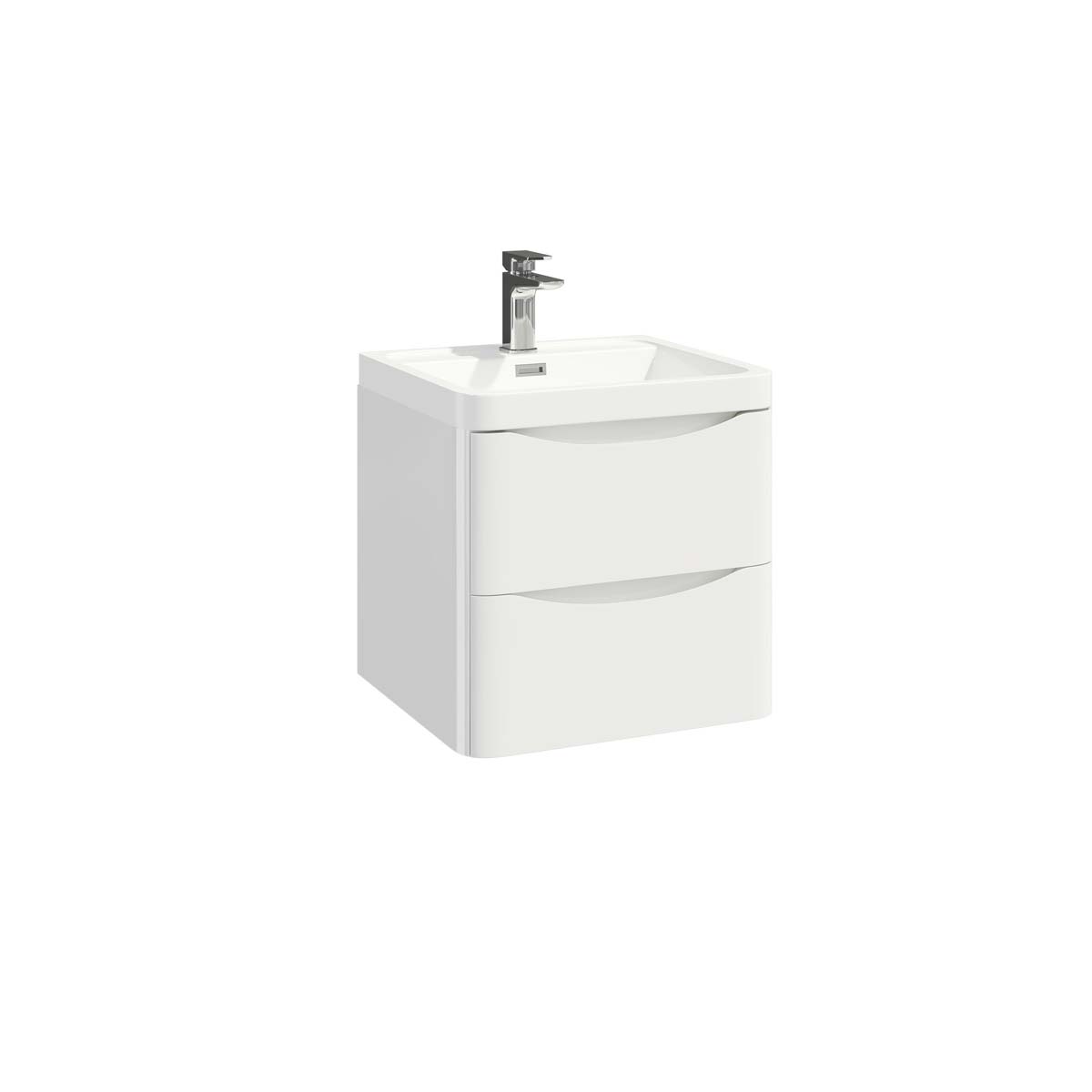 The gloss white cabinet finish reflects light and enhances the feeling of space, while the integrated ceramic basin adds seamless elegance. Designed for wall mounting, it keeps the floor area free, creating a more open look. The basin comes with a single tap hole, ready for your choice of mixer tap, and includes an overflow for added safety.