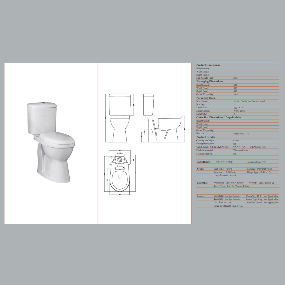 • Material: High-grade vitreous china pan with ABS plastic cistern