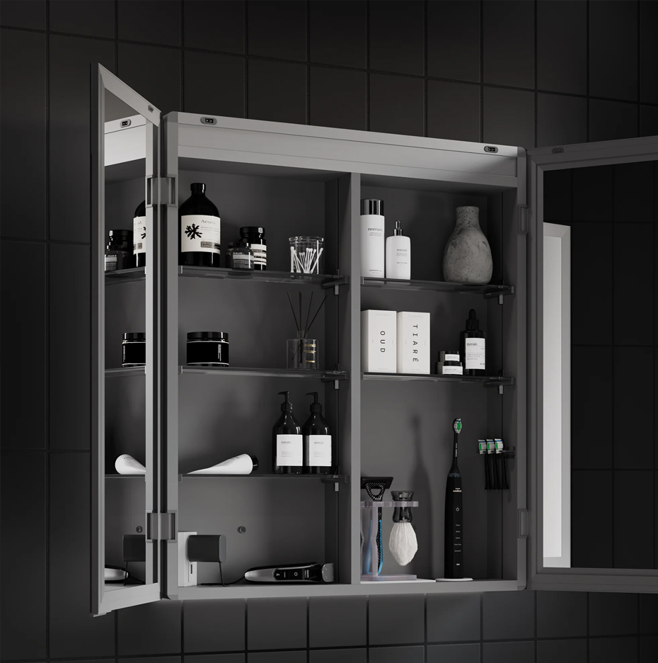 The Isoris LED Aluminium Cabinet combines sleek modern design with advanced functionality, offering a premium storage solution for contemporary bathrooms. Featuring energy-efficient LED lighting, durable aluminium construction, and a high-gloss finish, this cabinet enhances both aesthetics and practicality. Ideal for minimalist and luxury bathrooms alike, it provides ample storage while elevating the space with ambient illumination.