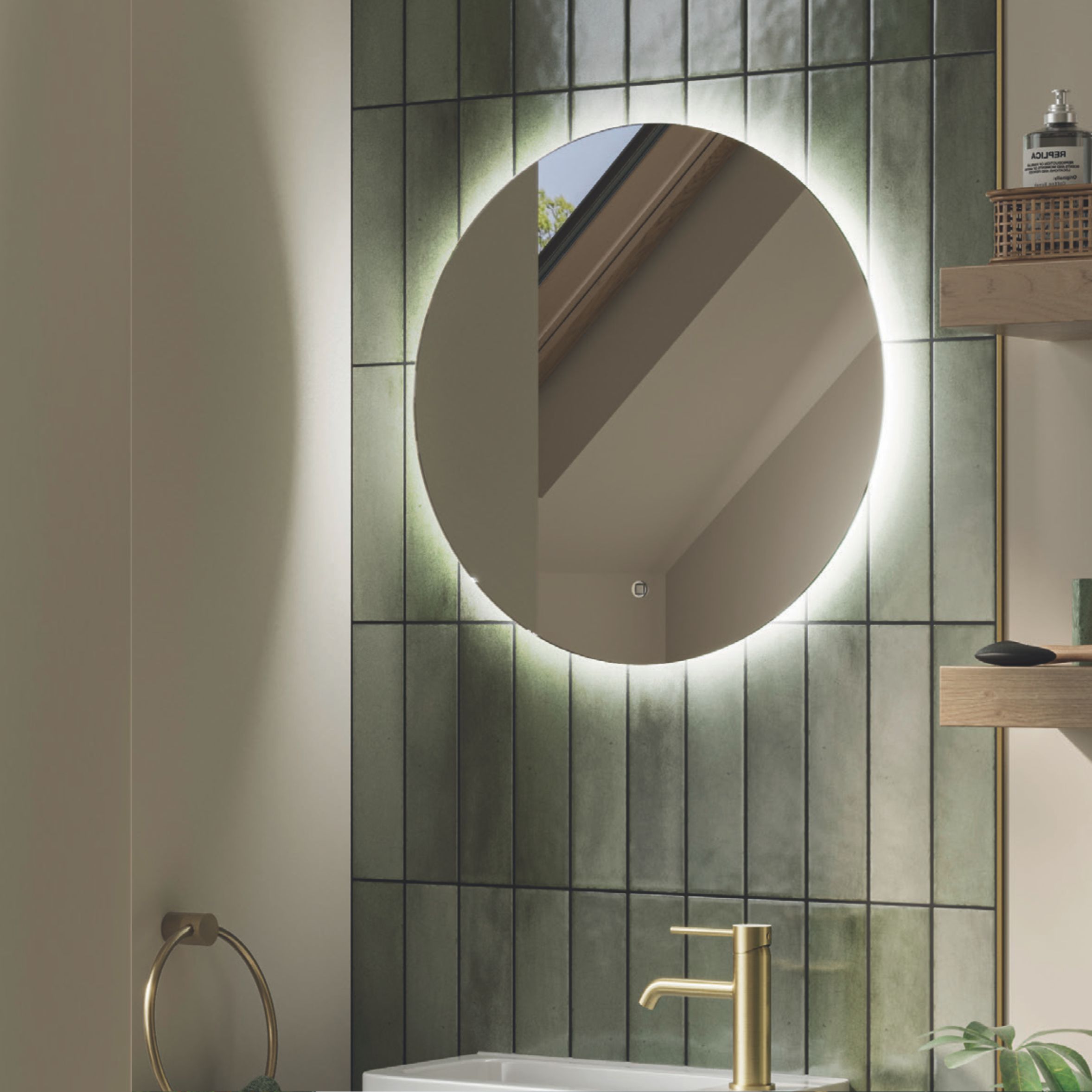 The Motif LED Mirror is a bold and elegant addition to any bathroom, featuring a perfectly round profile with soft LED perimeter lighting that creates an eye-catching halo effect. Designed to complement both contemporary and traditional interiors, its frame-less style and subtle glow add a touch of sophistication.