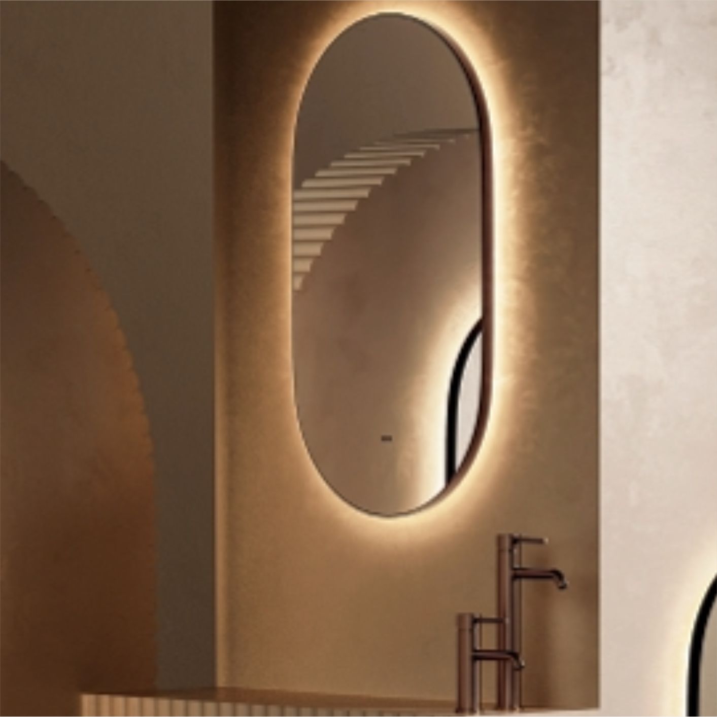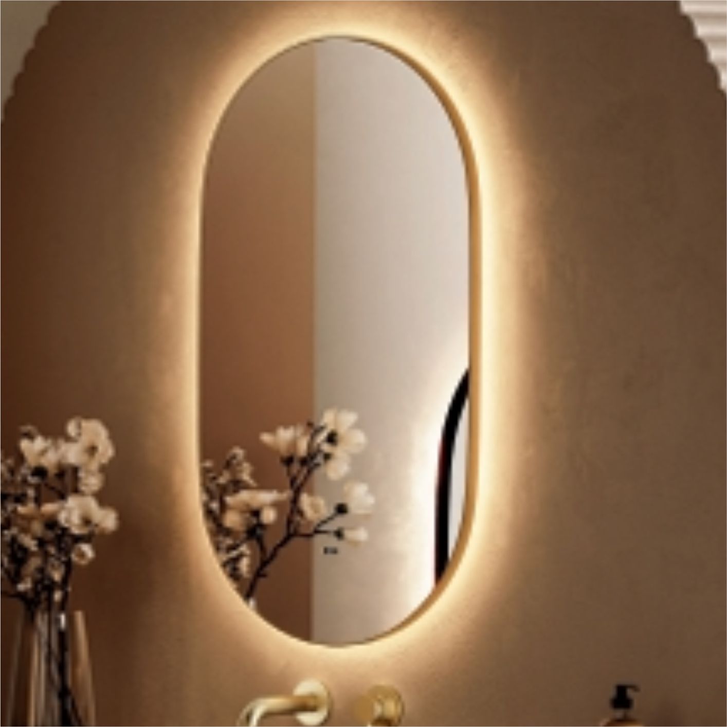 Design: The Mystic Pill LED Mirror features a soft, pill-shaped silhouette with a minimalist frame-less edge, blending seamlessly into any bathroom style. The elegant design makes it an ideal statement piece for modern and classic interiors alike.