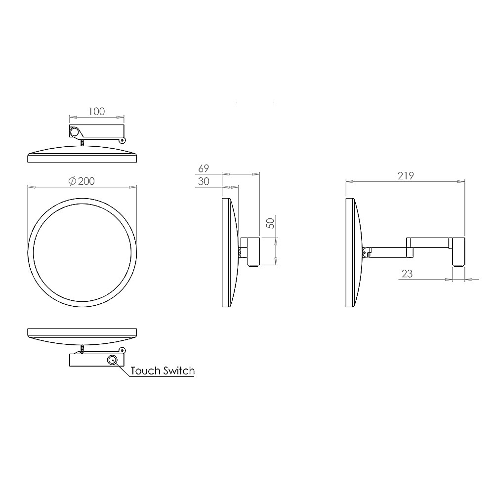 Each model features a 20cm mirror diameter and extends up to 22cm from the wall.