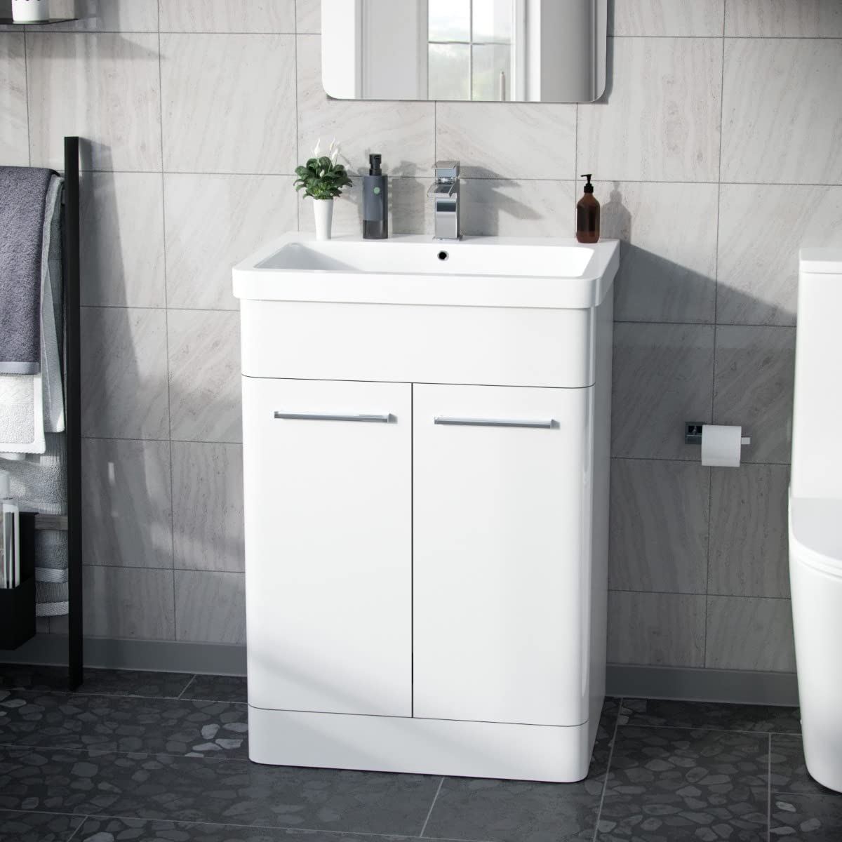 The soft-close double doors ensure a quiet and smooth user experience, while the interior storage compartment helps keep your essentials organised and out of sight. Built from moisture-resistant MDF, this unit offers excellent durability in high-humidity environments, making it perfect for busy family bathrooms or compact en-suites.