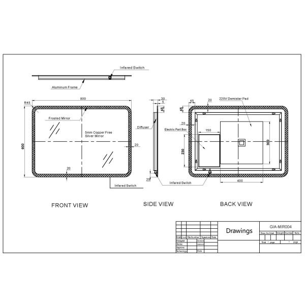 Built with 5mm tempered safety glass and an IP44 splash-proof rating, the Rico Mirror meets strict electrical safety standards. Automatic thermal protection prevents overheating, while the low-voltage LED system ensures safe operation in humid environments.