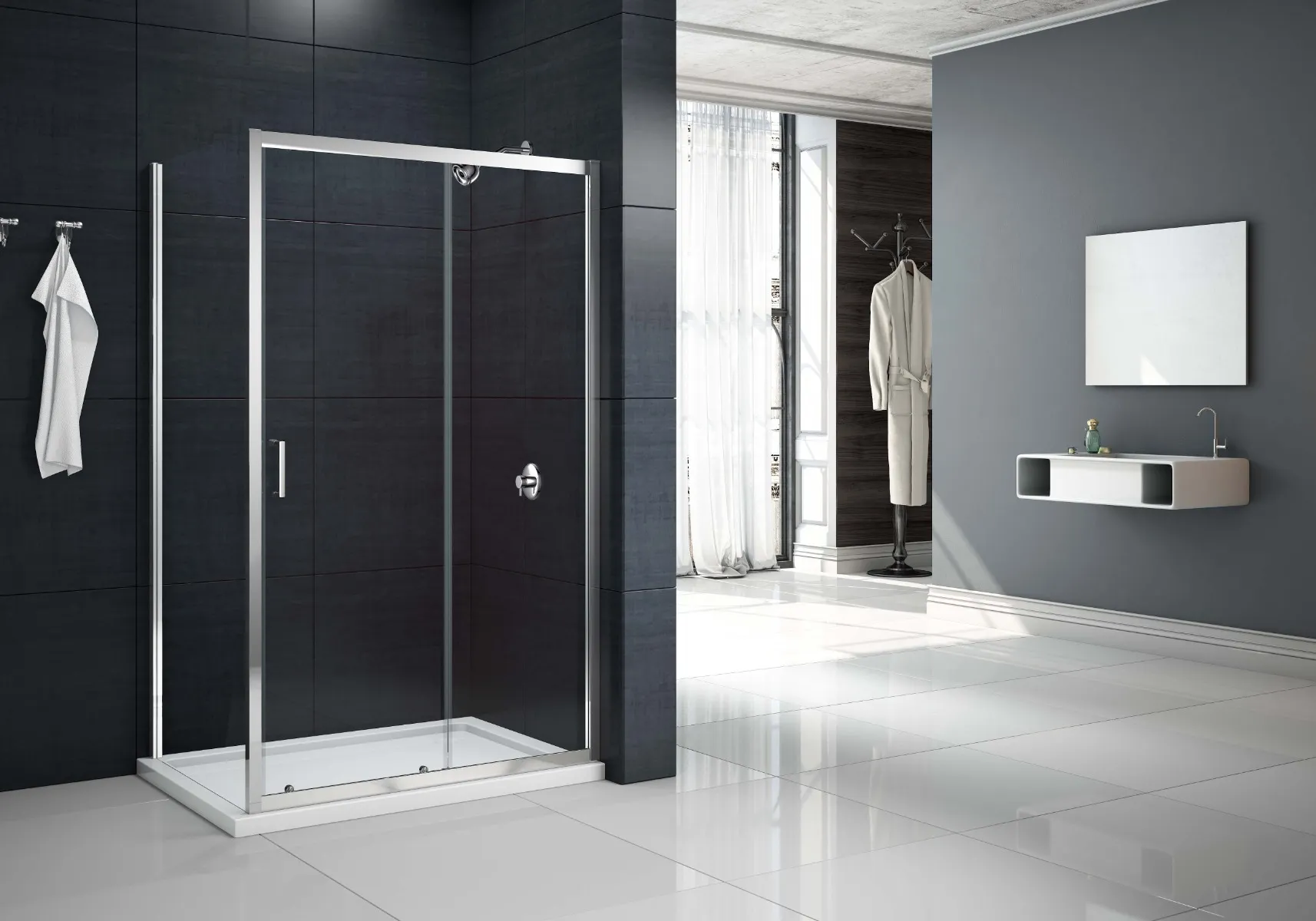 MBox Sliding door with optional Side Panel – Chrome