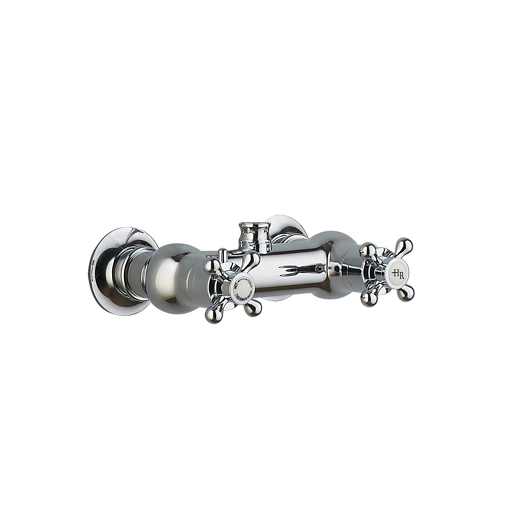 The valve’s traditional crosshead handles with porcelain temperature indicators evoke classic British bathroom elegance, while complementing: