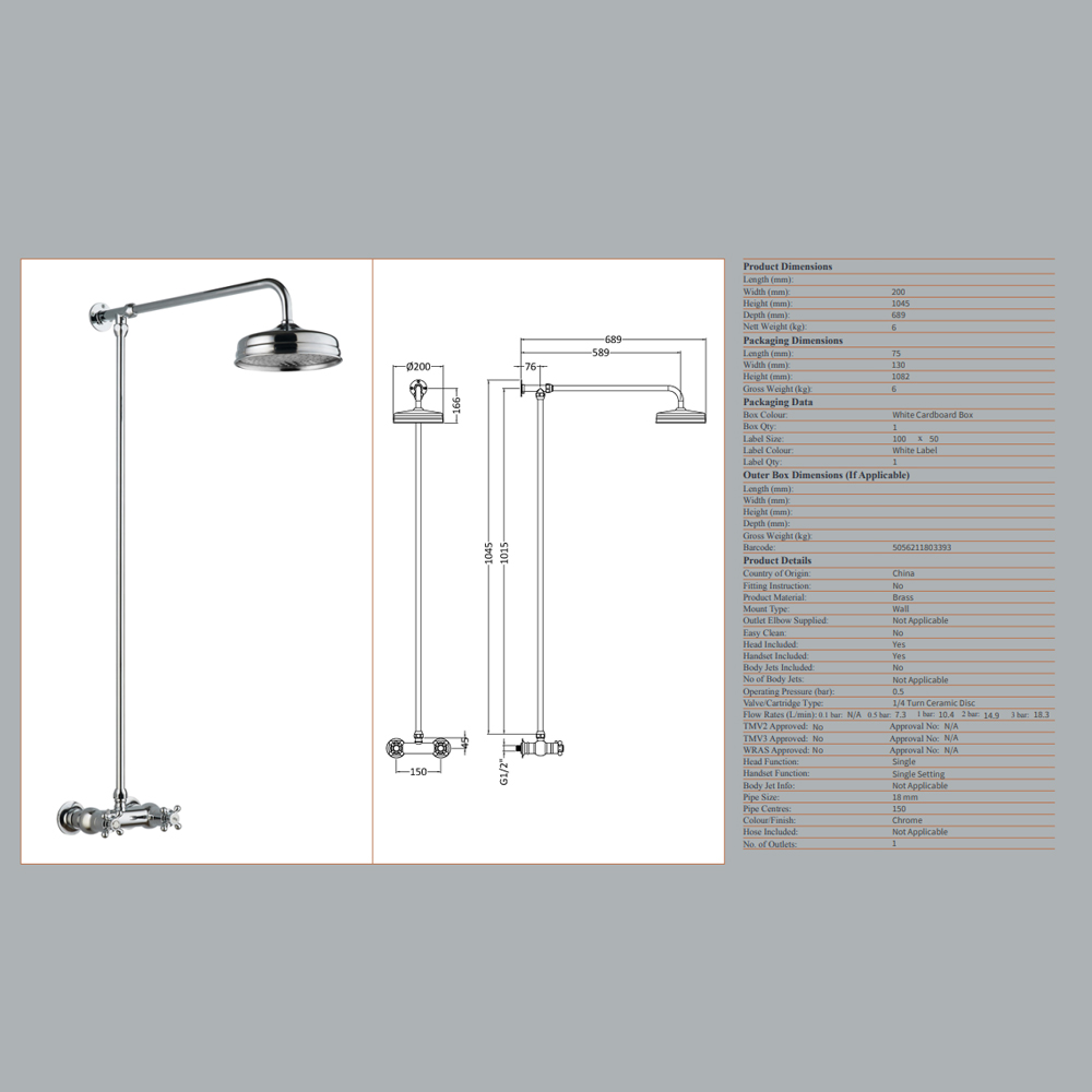 Traditional Thermostatic Shower Valve & Kit Chrome 1045 200 689