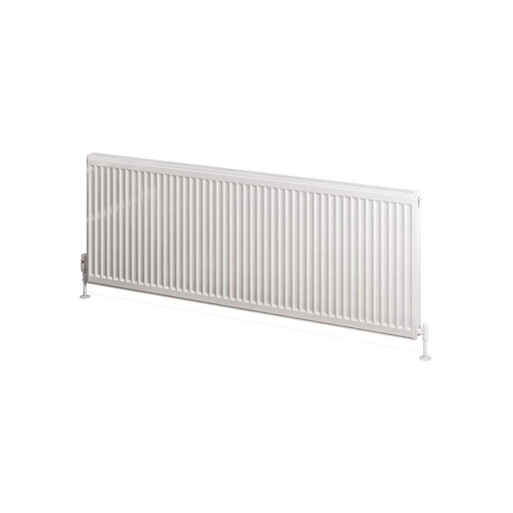 This compact panel radiator is a high-quality, space-saving solution for heating your home, featuring a single panel and single convector design. It is manufactured using state-of-the-art production lines and is tested to BS EN 442 standards, ensuring reliable performance and efficiency. The radiator is finished in a sleek gloss white powder coat and comes complete with a fitted top grill, side panels, and an installation kit.