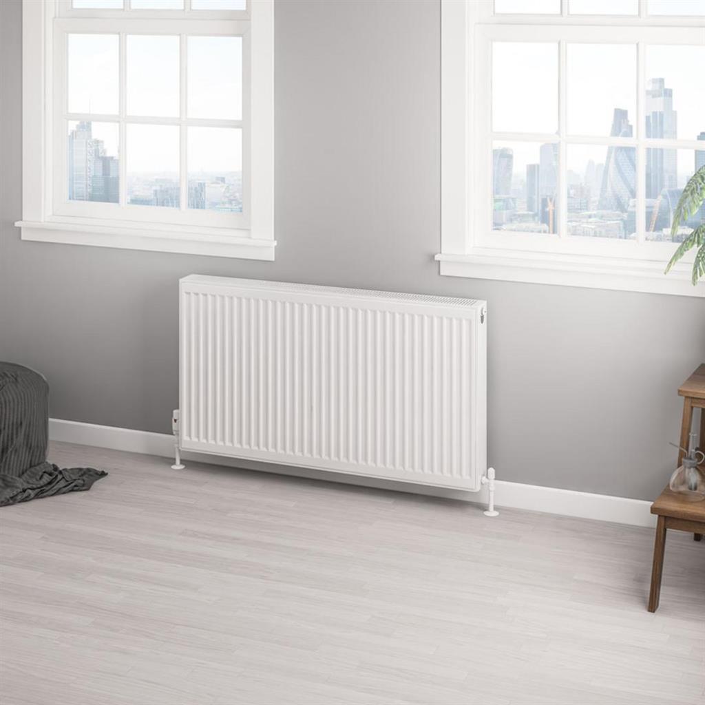 This compact panel radiator is a high-quality, space-saving solution for heating your bathroom, featuring double panels and double convectors for efficient heat output. With a sleek gloss white finish, it is designed to fit seamlessly into any bathroom style. The radiator is manufactured using state-of-the-art production lines and is tested to BS EN 442 standards, ensuring reliability and performance.