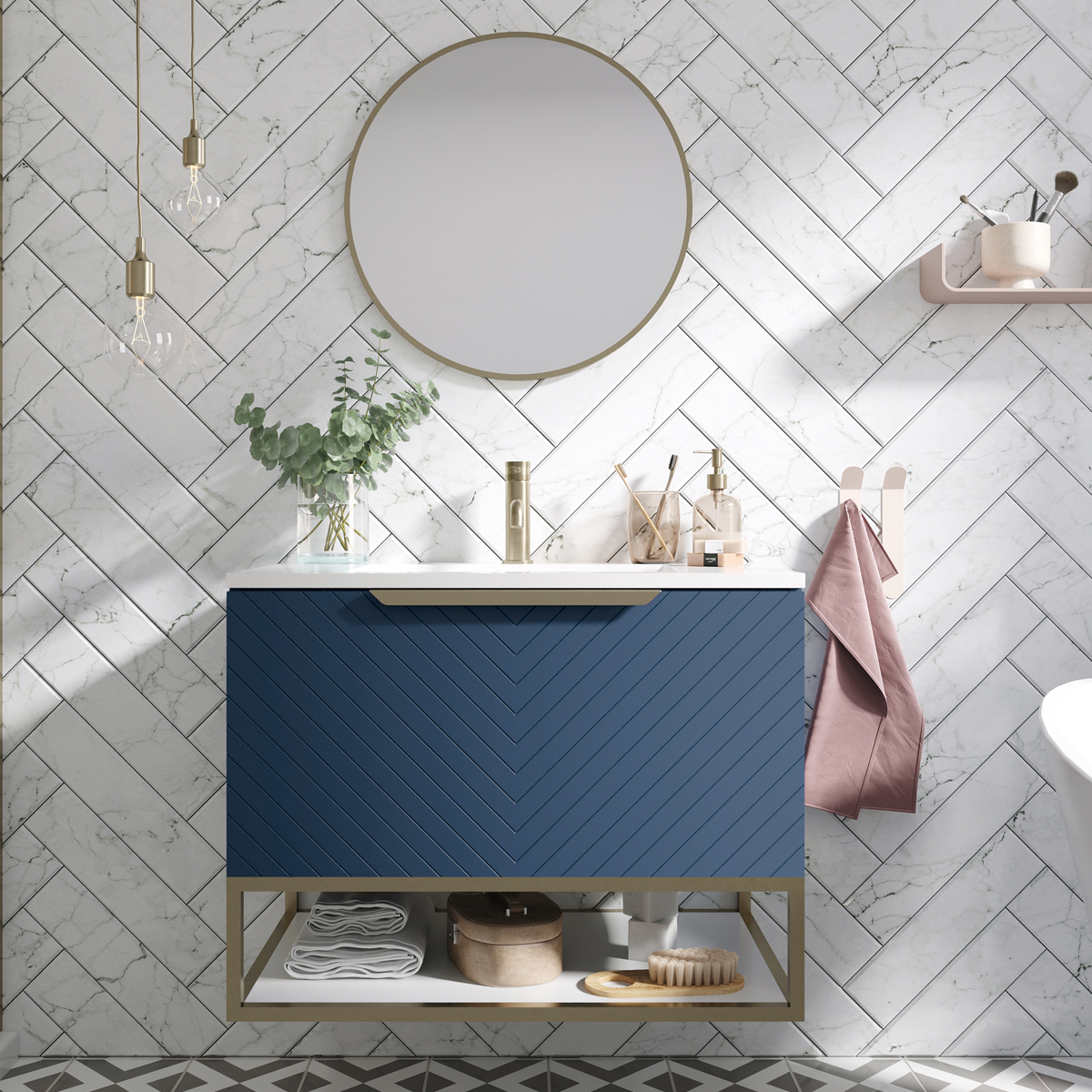 Crafted from durable steel, this moisture-resistant unit ensures longevity in humid bathroom environments. The included white shelf offers a practical space for organizing essentials, making it both stylish and functional. Designed for furniture-mounted installation, it seamlessly integrates with existing bathroom furniture.